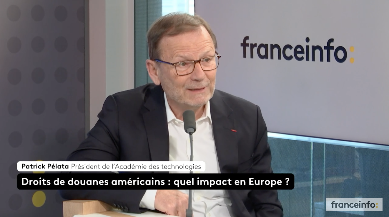À quelques heures des annonces sur les droits de douane américains, Patrick Pélata, président de l’Académie des technologies, au micro d’Isabelle Raymond sur France info, souligne que, pour répondre à la logique de Donald Trump, l’Europe doit notamment retrouver la voie de la souveraineté technologique et industrielle.